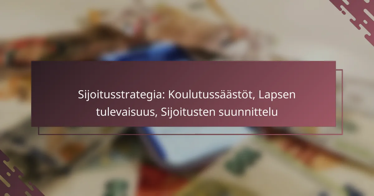 Sijoitusstrategia on keskeinen osa koulutussäästöjen suunnittelua, sillä se vaikuttaa suoraan siihen, kuinka paljon varoja kertyy lapsen tulevaisuuden koulutusta varten. Hyvin suunniteltu strategia auttaa perheitä saavuttamaan taloudelliset tavoitteensa ja varmistamaan lasten …