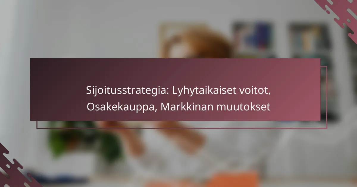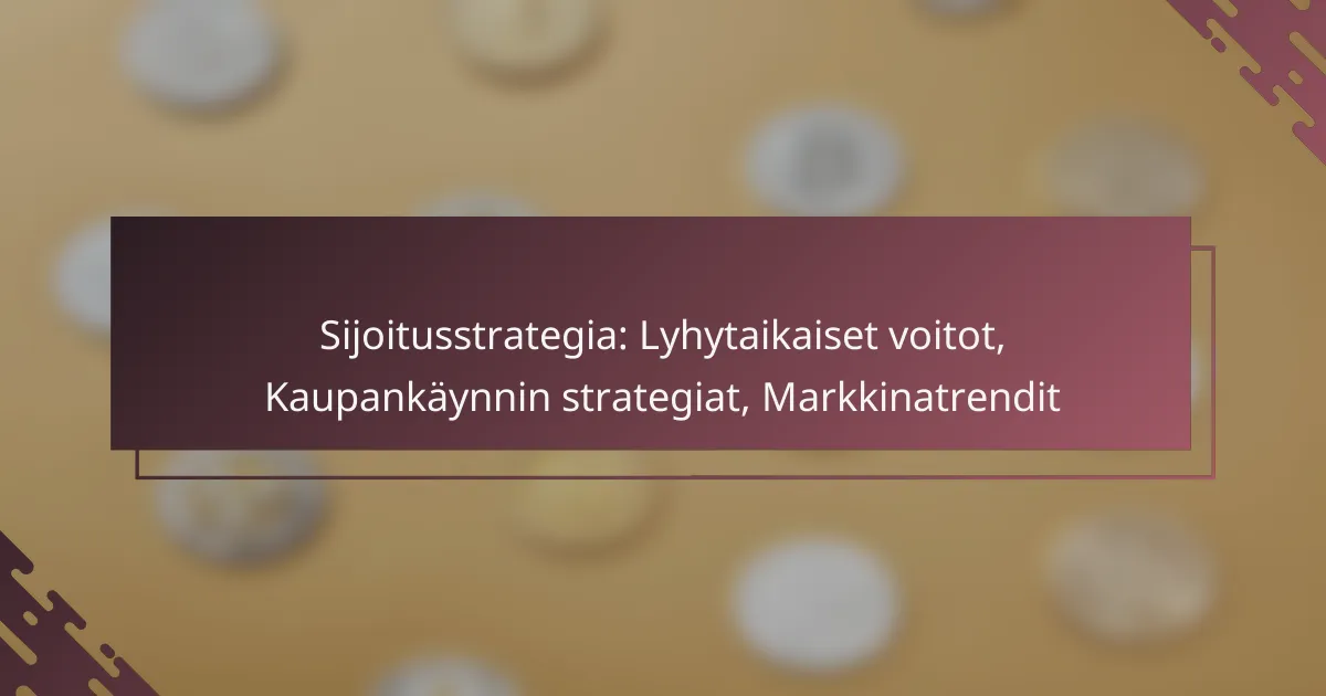 Lyhytaikaiset voittojen sijoitusstrategiat keskittyvät nopeisiin kaupankäyntimahdollisuuksiin, joissa sijoittajat pyrkivät hyötymään markkinoiden lyhytaikaisista liikkeistä. Tällaiset strategiat edellyttävät tarkkaa seurantaa ja nopeaa reagointia markkinamuutoksiin, jotta voitot voidaan maksimoida tehokkaasti. Mitkä ovat lyhytaikaisten …