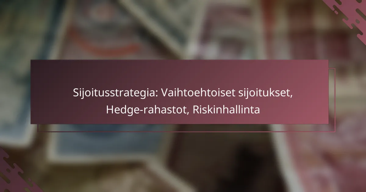 Sijoitusstrategia, joka keskittyy vaihtoehtoisiin sijoituksiin, tarjoaa sijoittajille mahdollisuuden hajauttaa salkkuaan perinteisten osakkeiden ja joukkovelkakirjojen ulkopuolelle. Hedge-rahastot, jotka hyödyntävät monimutkaisempia strategioita ja riskinhallintakeinoja, voivat tuottaa korkeita tuottoja kokeneille sijoittajille. Riskinhallinta on …