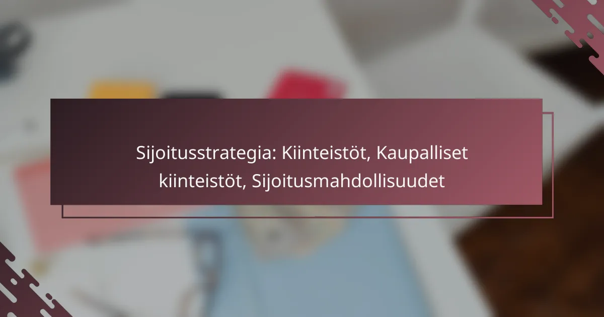 Kiinteistösijoittaminen tarjoaa monia mahdollisuuksia, erityisesti kaupallisissa kiinteistöissä, joissa tuotto-odotukset ja riskit vaihtelevat merkittävästi. Sijoittajien on tärkeää arvioida markkinatilannetta ja omia riskinsietokykyjään valitessaan strategiaa, joka voi vaihdella arvonnoususta vuokratulojen saamiseen. Ymmärtämällä …